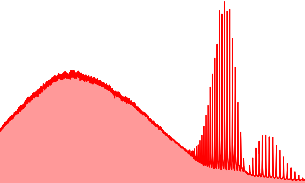 本研究では,この現象とレーザー共振器内におけるスペクトル変遷を応用して,意図的にガスセルを挿入した光共振器内の特定の位置において狭線幅のスペクトルピーク構造を重畳することに成功しました.